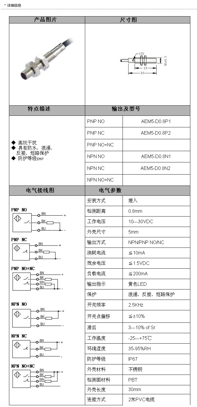 AEM5-D0.8P1,AEM5-D0.8P2,AEM5-D0.8N1,AEM5-D0.8N2,M5直流三線電感式接近開關(guān)