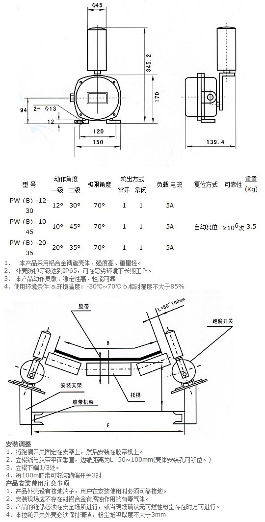PW(B)-12-30,PW(B)-10-45,PW(B)-20-35,兩級(jí)跑偏開關(guān)