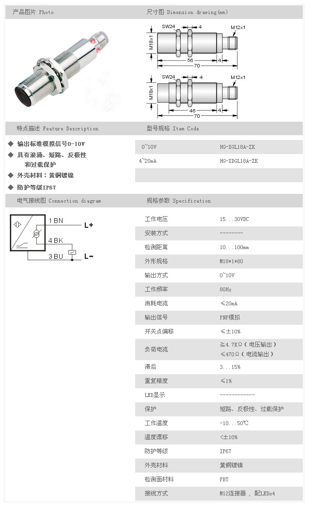 光電式線性傳感器 HG-XGL18A-ZK,HG-XDGL18A-ZK,
