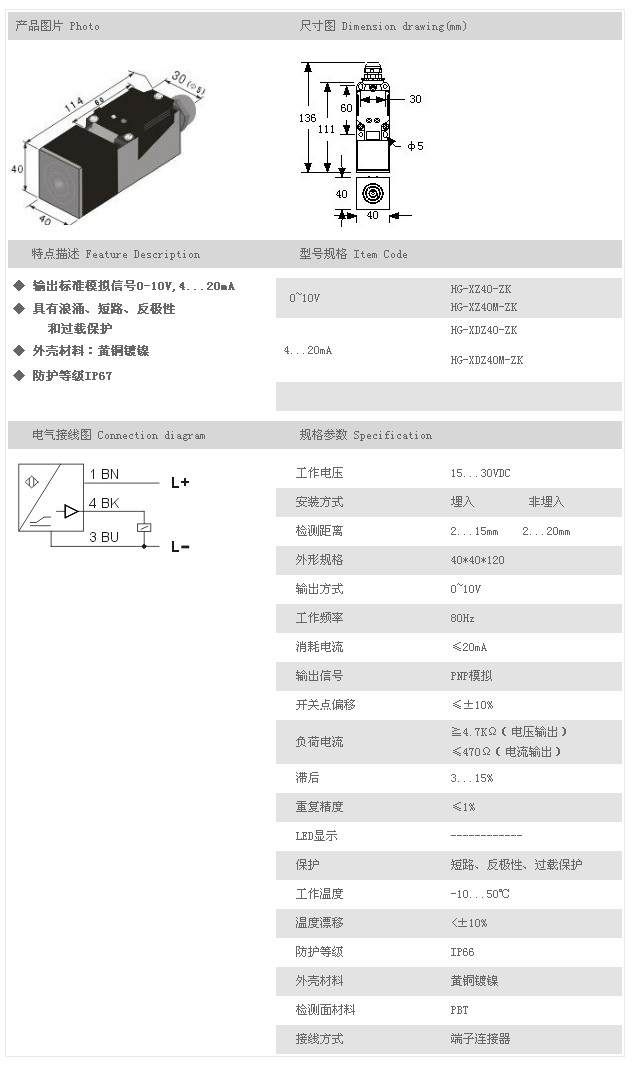 電感式線性傳感器 HG-XZ40-ZK,HG-XZ40M-ZK,HG-XDZ40-ZK,HG-XDZ40M-ZK,