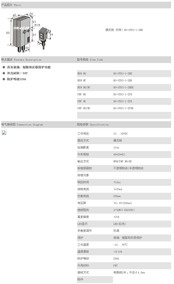 /傳感器 HG-GT63-1-ZNK,HG-GT63-1-ZNB,HG-GT63-1-ZNKB,HG-GT63-1-ZPK,HG-GT63-1-ZPB,HG-GT63-1-ZPKB