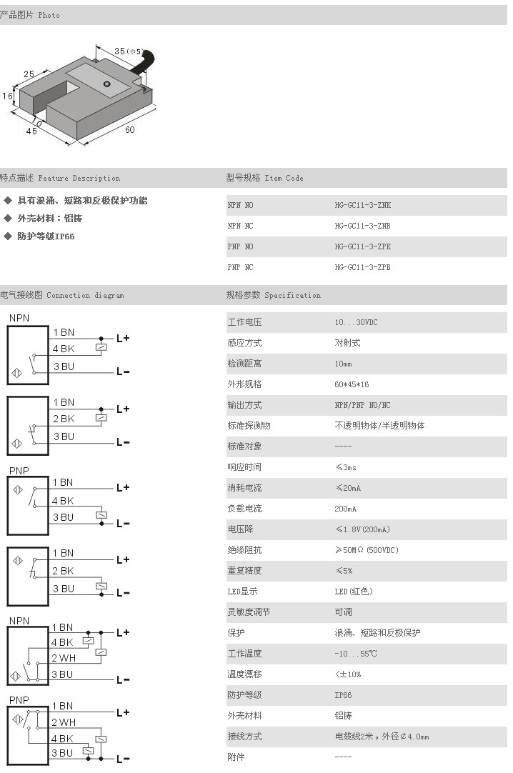 /傳感器 HG-GC11-3-ZNK,HG-GC11-3-ZNB,HG-GC11-3-ZPK,HG-GC11-3-ZPB,