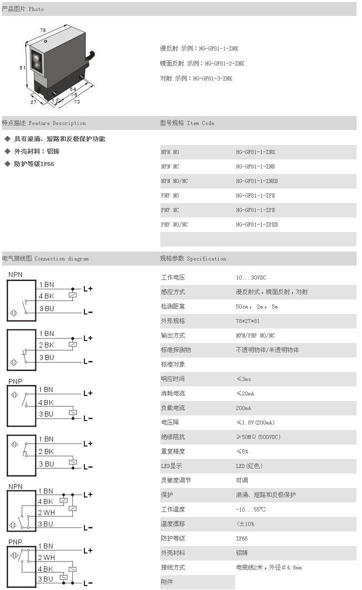 /傳感器 HG-GF81-1-ZNK,HG-GF81-1-ZNB,HG-GF81-1-ZNKB,HG-GF81-1-ZPK,HG-GF81-1-ZPB,HG-GF81-1-ZPKB