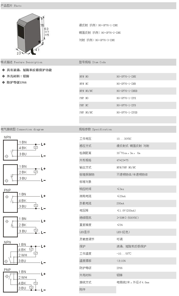方型光電開關(guān)/傳感器 HG-GF76-1-ZNK,HG-GF76-1-ZNB,HG-GF76-1-ZNKB,HG-GF76-1-ZPK,HG-GF76-1-ZPB,HG-GF76-1-ZPKB |