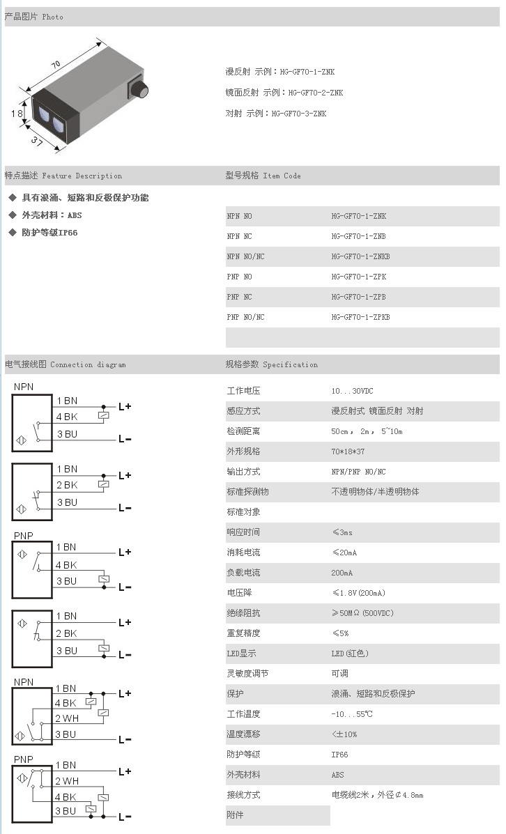 方型光電開關/傳感器 HG-GF70-1-ZNK,HG-GF70-1-ZNB,HG-GF70-1-ZNKB,HG-GF70-1-ZPK,HG-GF70-1-ZPB,HG-GF70-1-ZPKB, |