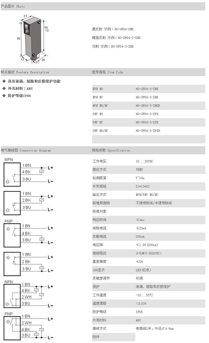 /傳感器 HG-GF64-3-ZNK,HG-GF64-3-ZNB,HG-GF64-3-ZNKB,HG-GF64-3-ZPK,HG-GF64-3-ZPB,HG-GF64-3-ZPKB