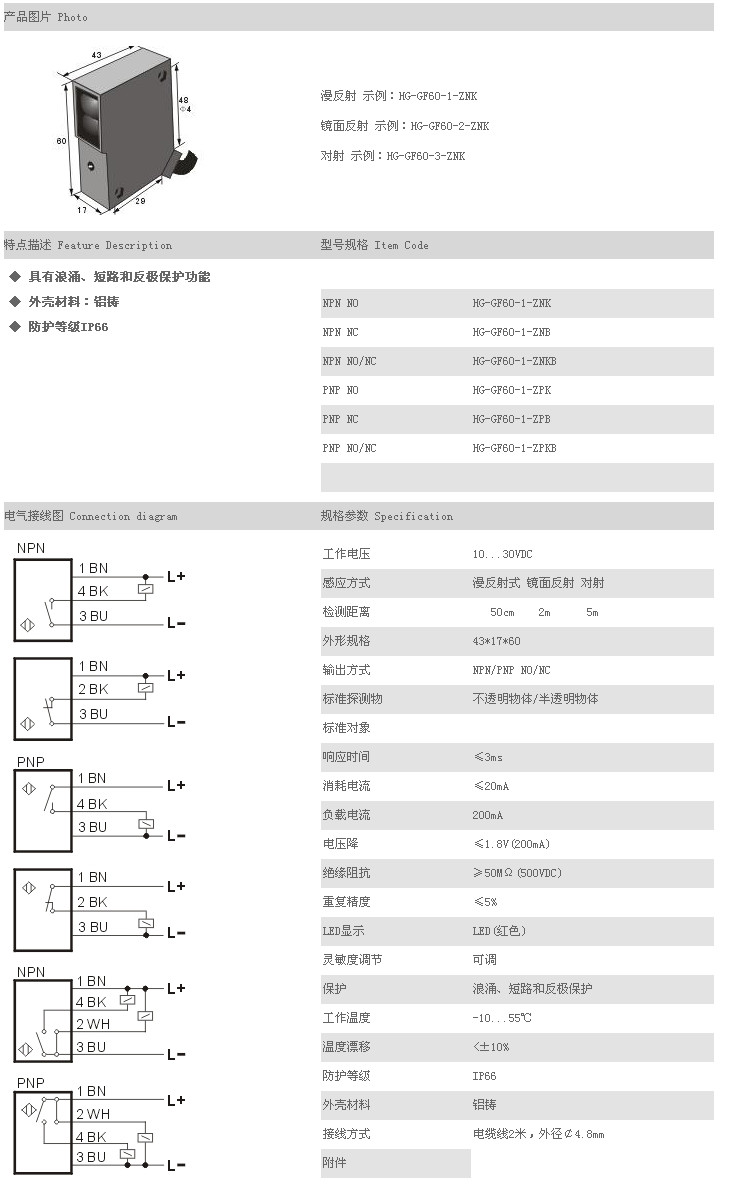方型光電開關/傳感器 HG-GF60-1-ZNK,HG-GF60-1-ZNB,HG-GF60-1-ZNKB,HG-GF60-1-ZPK,HG-GF60-1-ZPB,HG-GF60-1-ZPKB |