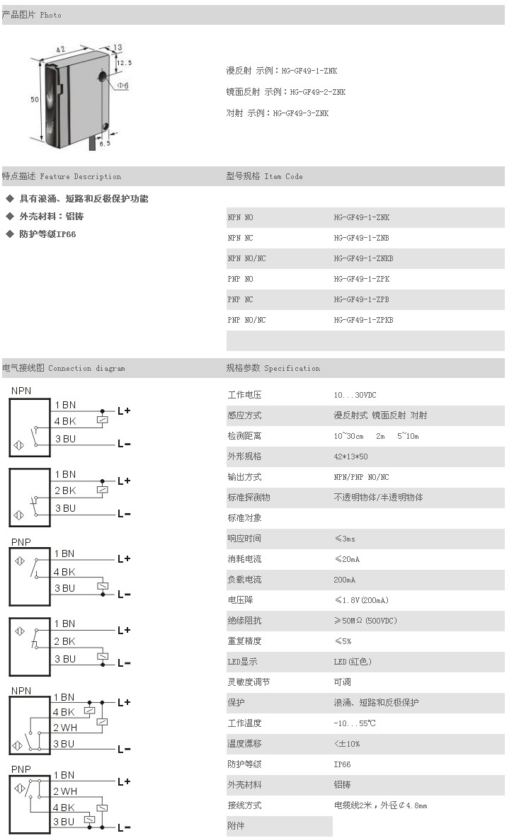 方型光電開關(guān)/傳感器 HG-GF49-1-ZNK,HG-GF49-1-ZNB,HG-GF49-1-ZNKB,HG-GF49-1-ZPK,HG-GF49-1-ZPB,HG-GF49-1-ZPKB, |