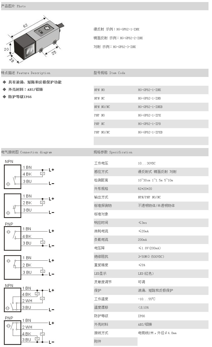 方型光電開關(guān)/傳感器 HG-GF62-1-ZNK,HG-GF62-1-ZNB,HG-GF62-1-ZNKB,HG-GF62-1-ZPK,HG-GF62-1-ZPB,HG-GF62-1-ZPKB |