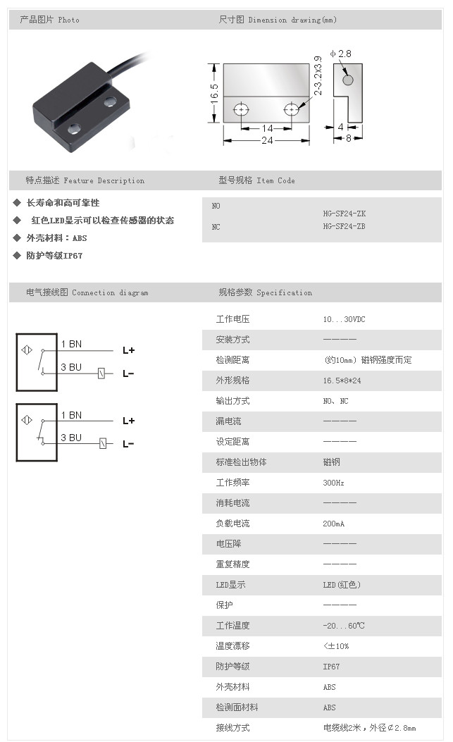 普通型磁性開關(guān) HG-SF24-ZK,HG-SF24-ZB,
