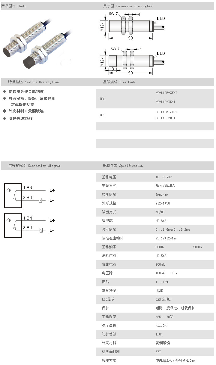 防水/防油/防腐蝕接近開關(guān) HG-L12M-ZK-T,HG-L12-ZK-T,HG-L12M-ZB-T,HG-L12-ZB-T,