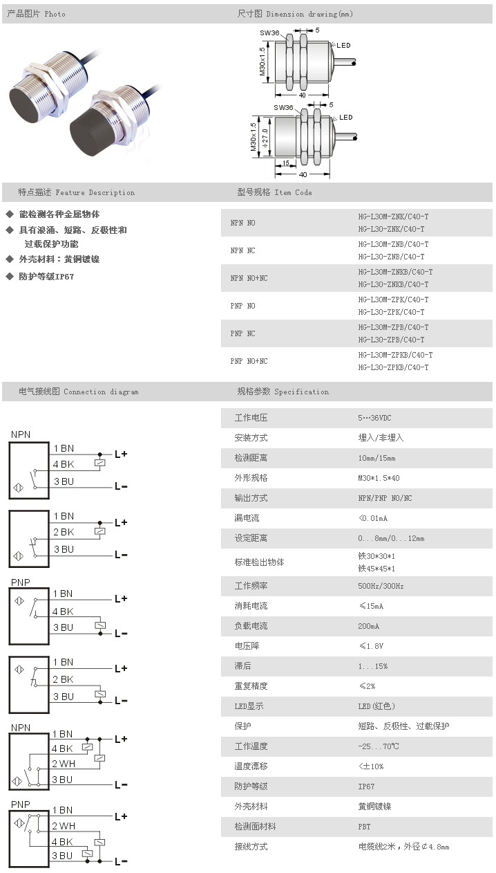 防水/防油/防腐蝕接近開關(guān) HG-L30M-ZNK/C40-T,HG-L30-ZNK/C40-T,HG-L30M-ZNB/C40-T,HG-L30-ZNB/C40-T,HG-L30M-ZNKB/C40-T,HG-L30-ZNKB/C40-T,HG-L30M-ZPK/C40-T,HG-L30-ZPK/C40-T,HG-L30M-ZPB/C40-T,HG-L30-ZPB/C40-T,HG-L30M-ZPKB/C40-T,HG-L30-ZPKB/C40-T,