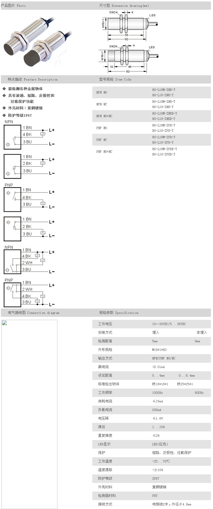 防水/防油/防腐蝕接近開關 HG-L18M-ZNK-T,HG-L18-ZNK-T,HG-L18M-ZNB-T,HG-L18-ZNB-T,HG-L18M-ZNKB-T,HG-L18-ZNKB-T,HG-L18M-ZPK-T,HG-L18-ZPK-T,HG-L18M-ZPB-T,HG-L18-ZPB-T,HG-L18M-ZPKB-T,HG-L18-ZPKB-T,