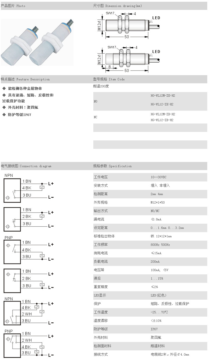 耐高溫接近開關(guān)(低溫) HG-WL12M-ZK-H2,HG-WL12-ZK-H2,HG-WL12M-ZB-H2,HG-WL12-ZB-H2,