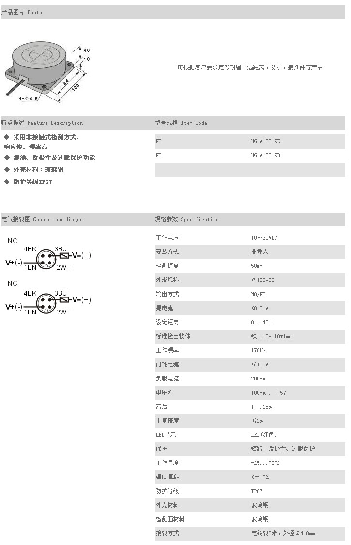 餅型接近傳感器 HG-A100-ZK,HG-A100-ZB,