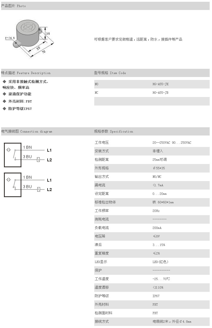 餅型接近傳感器 HG-A55-JK,HG-A55-JB,