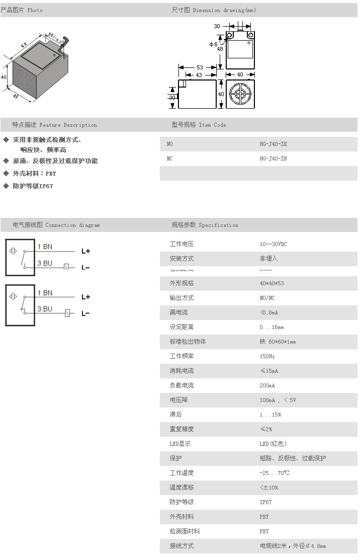方型接近開關 HG-J40-ZK,HG-J40-ZB,