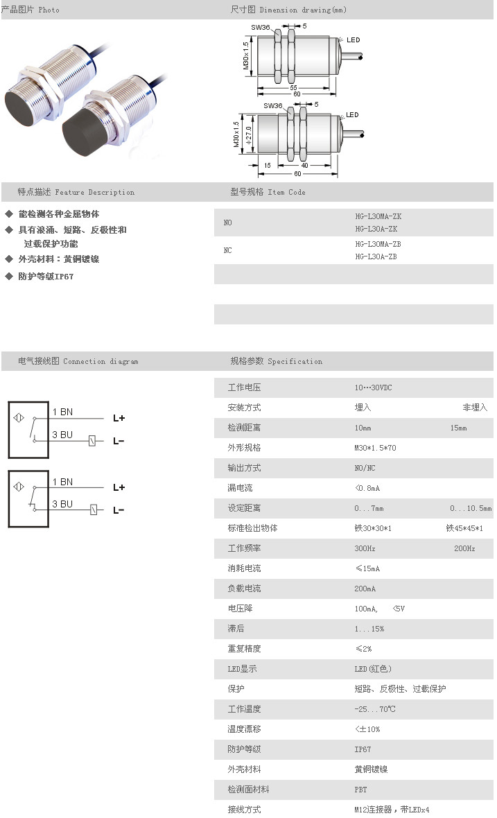 圓柱型接近開關(guān) HG-L30MA-ZK,HG-L30A-ZK,HG-L30MA-ZB,HG-L30A-ZB,