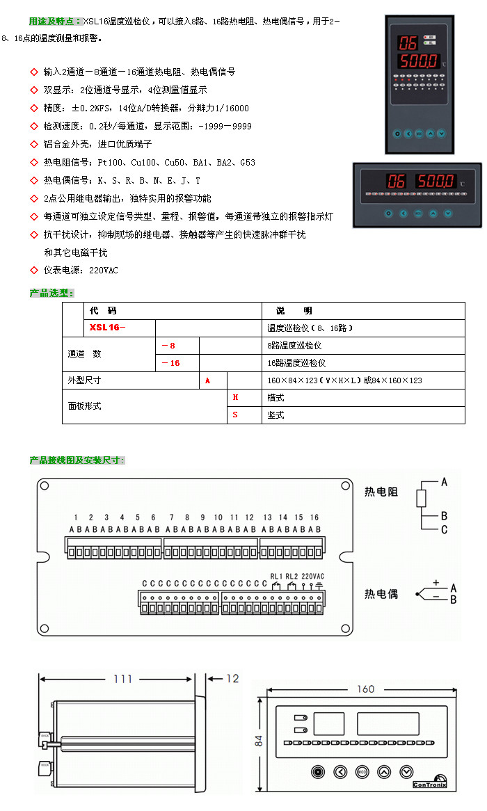 XSL16-8AH,XSL16-8AS,XSL16-16AH,XSL16-16AS,XSL16,多路溫度巡檢儀
