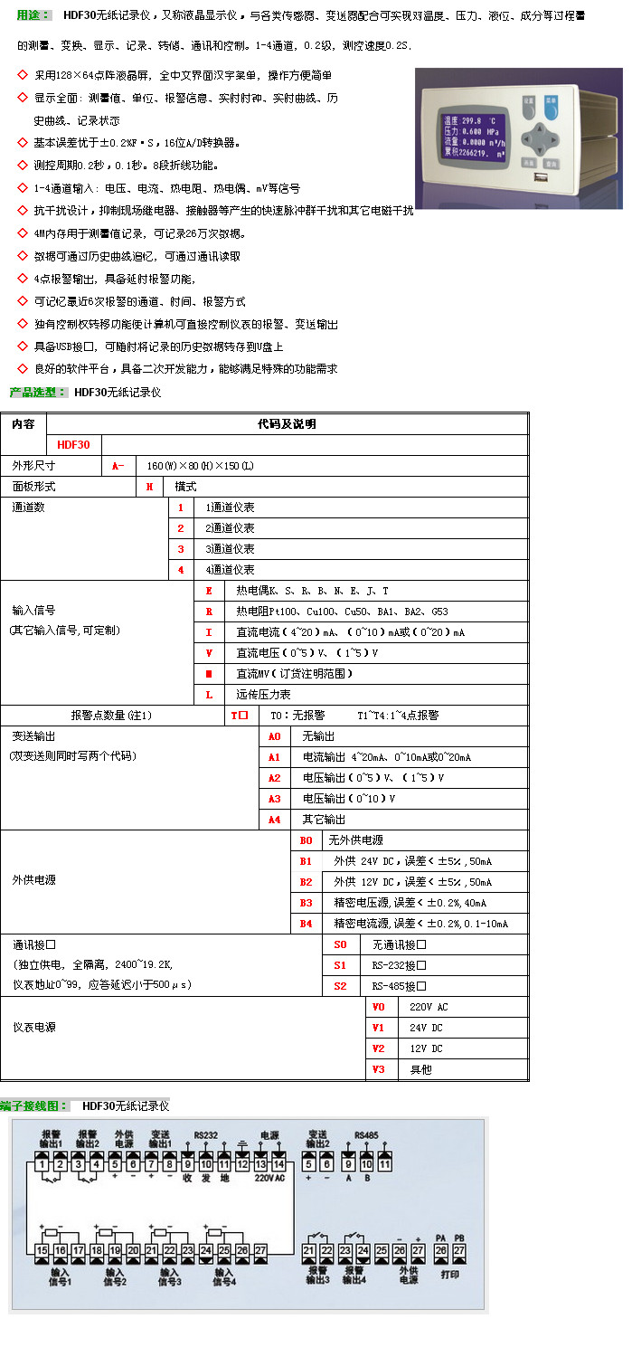 型號(hào): HDF30A-H1E,HDF30A-H2R,HDF30A-H3I,HDF30A-H3L,HDF30A-H4R,HDF30A-H4L,HDF30,無紙記錄儀