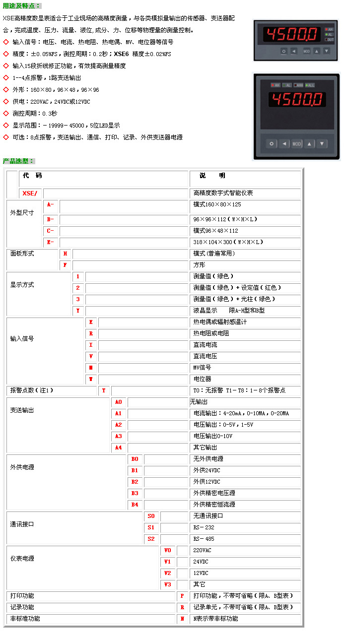 型號: XSE/A-H1E,XSE/A-F1R,XSE/B-H3V,XSE/B-FYM,XSE/C-F3W,XSE/E-FYW,XSE,高精度數(shù)顯儀
