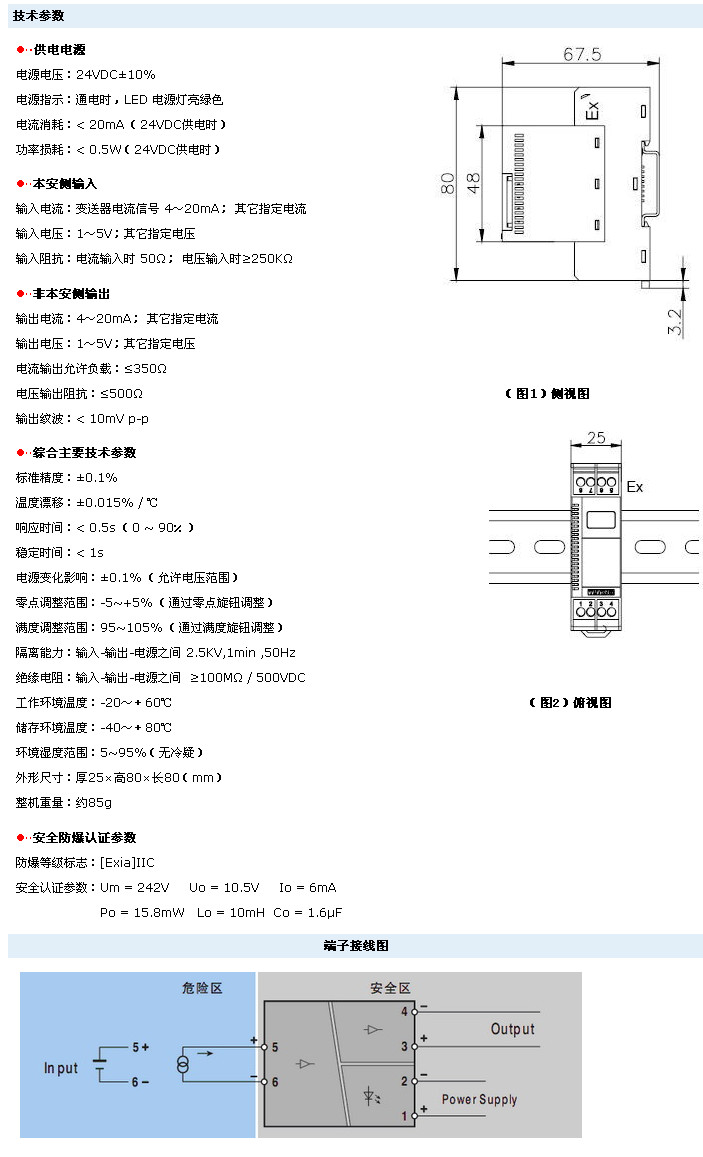 本隔離安全柵需要直流24V電源供電,供電電源-輸入-輸出之全隔離。