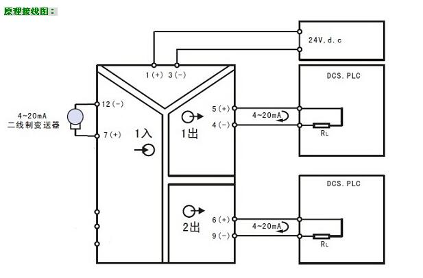 ◇ 將1路信號(hào)隔離分配為2路信號(hào)輸出,并配電24V