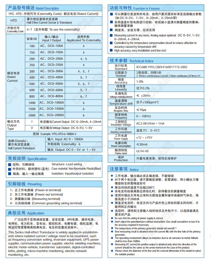 YPG-HTD-4-100A,YPG-HTD-5-300A,YPG-HTD-6-500A,YPG-HTD-7-800A,YPG-HTD,霍爾效應(yīng)直檢式變送器