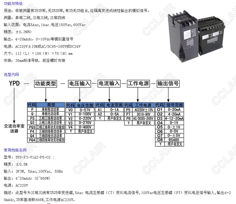 YPD-P3-V1A2-P5-O2,YPD-P,YPD-Q,YPD-P3,YPD-Q3,YPD-PQ3,YPD-P4,YPD-Q4,YPD-PQ4,功率變送器