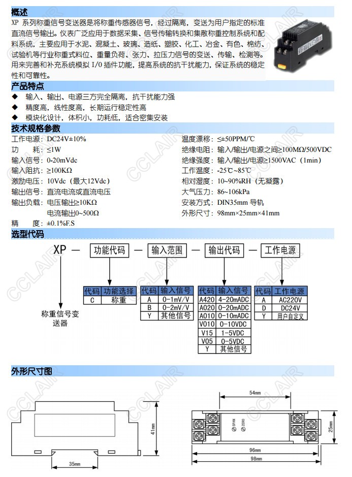 XP-C-B-A420-D,XP-C-A-A020-D,XP-C-B-V010-D,XP-C-B-V15-A,XP-C-B-V05-D,XP,稱重信號(hào)變送器