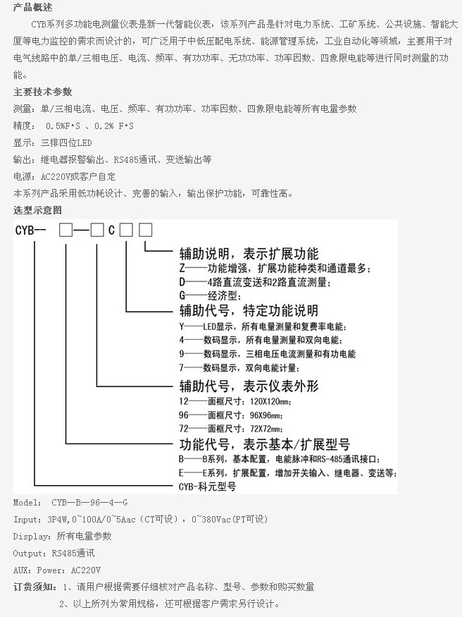 CYB-B-12,CYB-B-96,CYB-B-72,CYB-E-12,CYB-E-96,CYB-E-72,CYB-B-96-4-G,CYB,多功能電測(cè)量?jī)x表