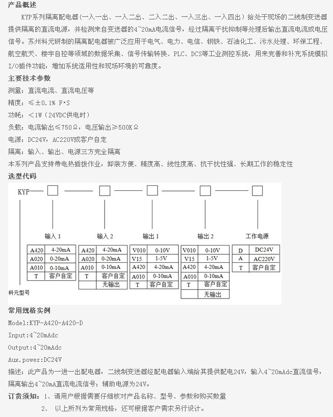KYP-A420,KYP-A020,KYP-A010,KYP-T,KYP-A420-A420-D,KYP,隔離配電器