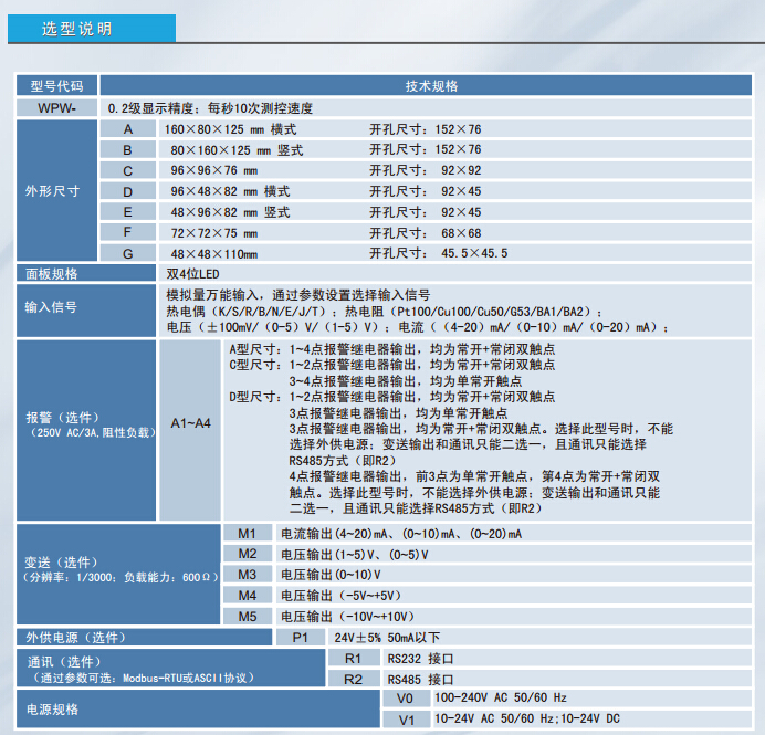 WPW-A,WPW-B,WPW-C,WPW-D,WPW-E,WPW-F,WPW-G,萬能輸入型數(shù)顯表
