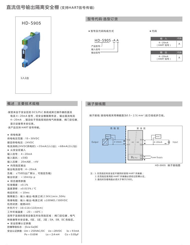 HD-5905-AA,HD-5905,直流信號輸出隔離安全柵