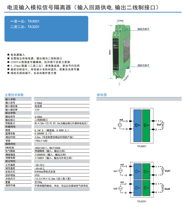 TA3001,TA3201,電流輸入模擬信號隔離器