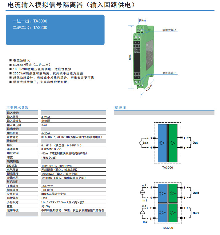 TA3000,TA3200,電流輸入模擬信號(hào)隔離器