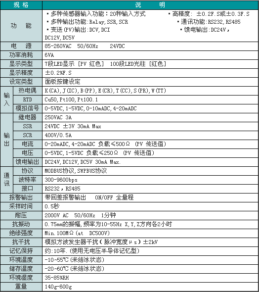 集數(shù)字儀表與模擬儀表于一體,可對溫度、壓力、液位、速度等測量信號進行數(shù)字量顯示控制(高亮度LED數(shù)碼顯示)及相對模擬量顯示(光柱顯示),使測量值的顯示更為清晰直觀。0.2%高測量精度,通道算術運算功能,使用更為簡單方便。