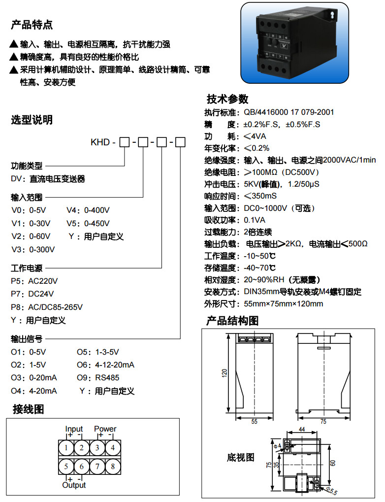 KHD-DV-V0,KHD-DV-V1,KHD-DV-V2,KHD-DV-V3,KHD-DV-V4,KHD-DV-V5,KHD-DV-Y,KHD-DV-V3-P7-O4,KH型直流電壓變送器