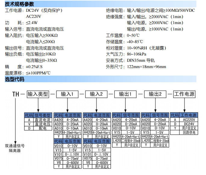 TH-A,TH-V,TH-D,TH-A-2A420-2A420-D,TH-V-2Y-2A420-D,TH雙通道信號隔離器