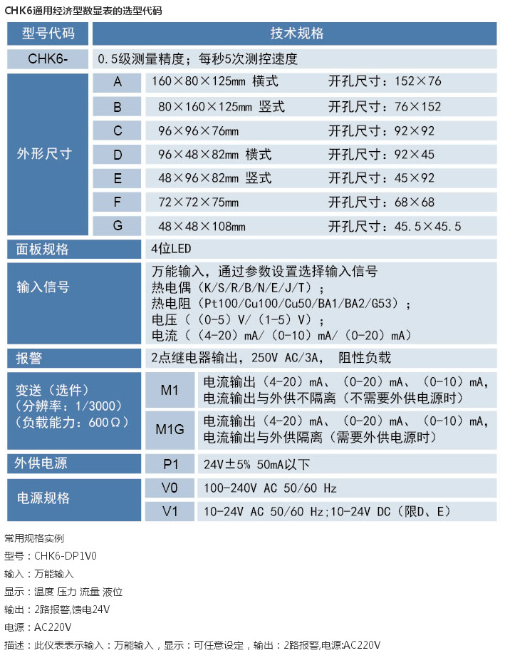 CHK6通用經(jīng)濟(jì)型數(shù)顯表的基本性能