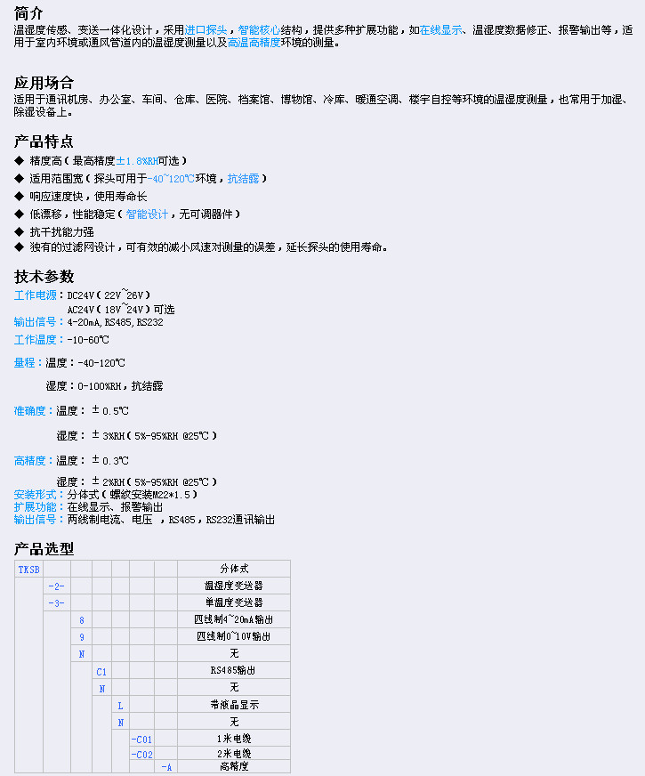 TKSB-2-8,TKSB-2-9,TKSB-2-N,TKSB-3-8,TKSB-3-9,TKSB-3-N,TKSB-2,TKSB-3,分體式溫濕度變送器