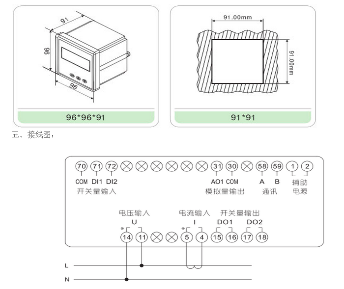 擴展:AC5A以上需配電流互感器,AC500V以上需配電壓互感器,現(xiàn)場可編程設置輸入?yún)?shù)變比。