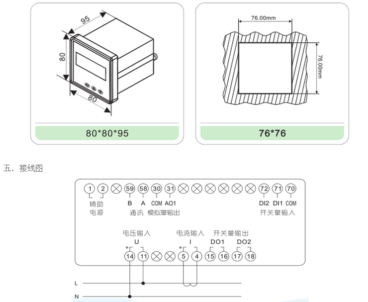 擴(kuò)展:AC5A以上需配電流互感器,AC500V以上需配電壓互感器,現(xiàn)場(chǎng)可編程設(shè)置輸入?yún)?shù)變比。
