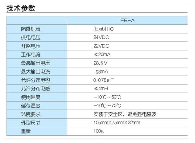 FB-A:一個電源回路,兩個信號通路;適用于兩線制、三線制、四線制輸出變送器;過壓、過流指示井保護;斷電后可自動恢復正常工作;雪崩降壓、限流。
