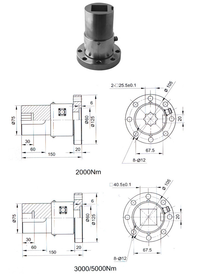 · 靜態(tài)扭矩測量。一端為鍵(或內(nèi)四方鍵)連接,一端為法蘭盤連接。