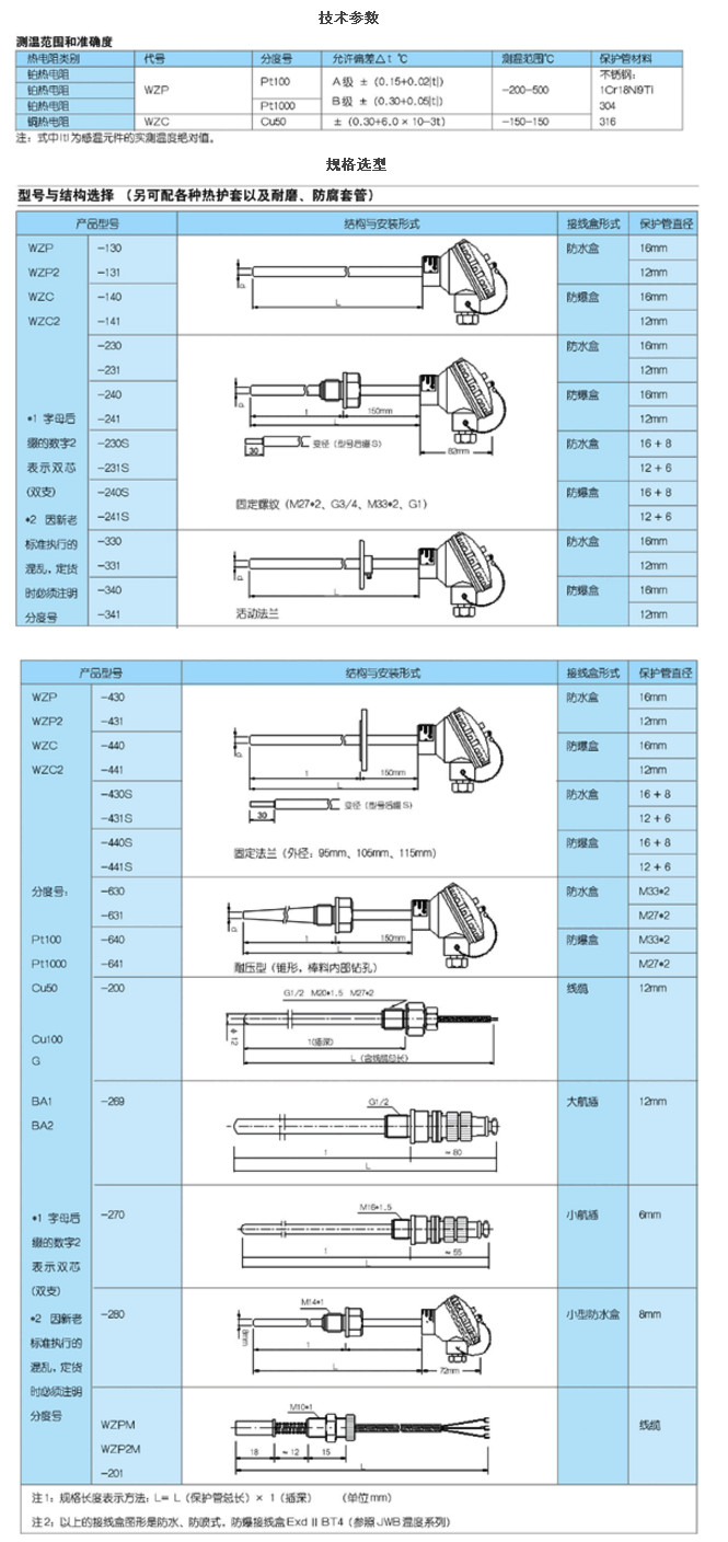 WZP-130,WZP2-430,WZC-230S,WZC2-141,WZC2-441S,WZPM-201,WZP2M-201,WZ,裝配式熱電阻