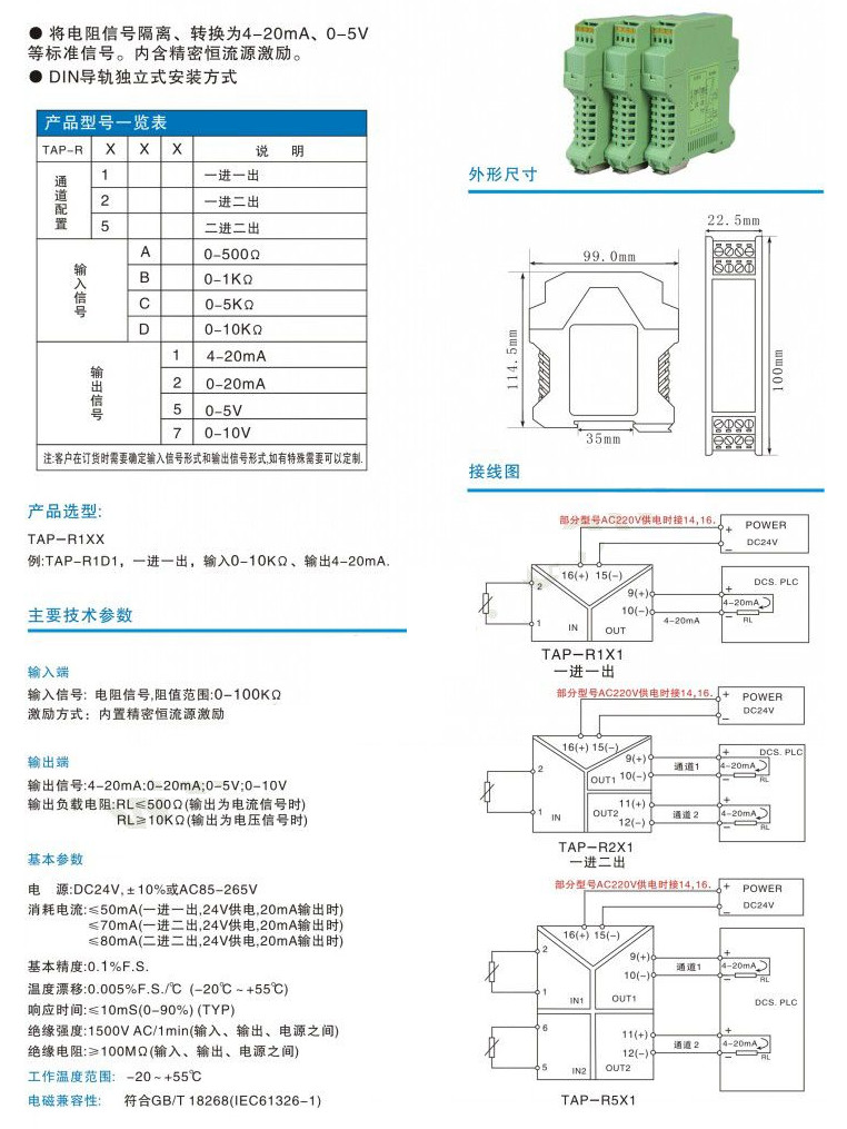 TAP-R1A1,TAP-R1C2,TAP-R1D1,TAP-R2A5,TAP-R2D5,TAP-R5A7,TAP-R5D7,TAP-R,電阻信號隔離器