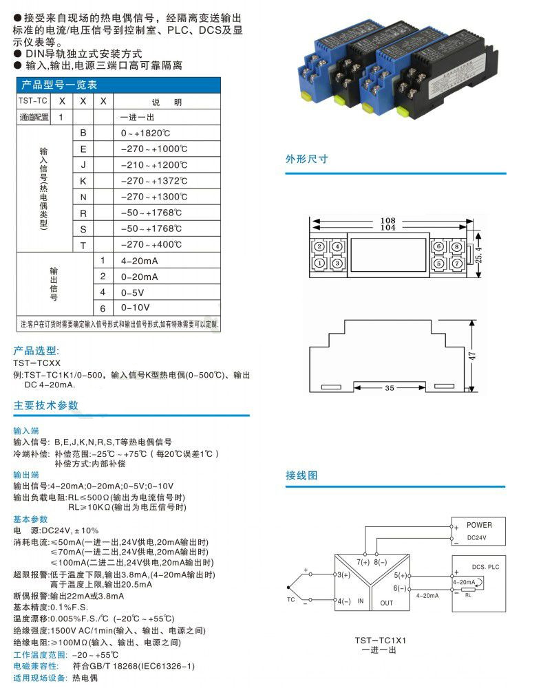 TST-TC1B1,TST-TC1E2,TST-TC1J4,TST-TC1K6,TST-TC1N1,TST-TC1T6,TST-TC,熱電偶信號(hào)隔離器