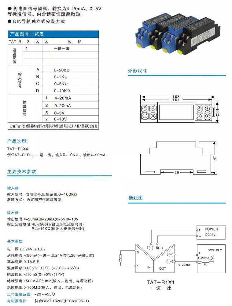 TAT-R1A1,TAT-R1A7,TAT-R1A7,TAT-R1C1,TAT-R1C5,TAT-R1D7,TAT-R,電阻信號隔離器