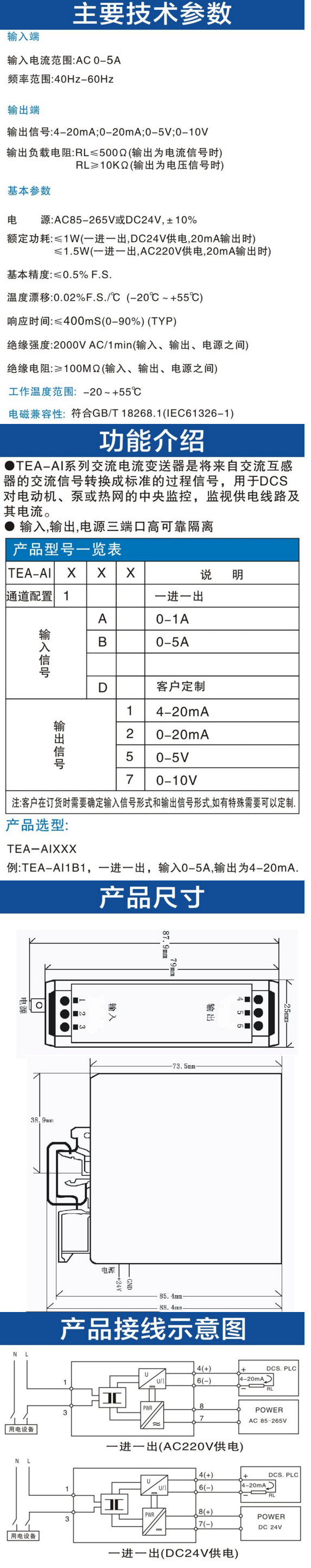 TEA-AI1A1,TEA-AI1A2,TEA-AI1A5,TEA-AI1A7,TEA-AI1B1,TEA-AI1D7,TEA-AI,交流電流變送器